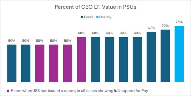 With 75% of LTI value in the form of PSUs for our CEO and EVPs, we place a higher percentage of LTI value at risk for performance than any of our peers.